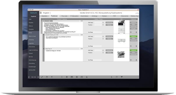 Bilden Sie die Prozesse in Ihrem Unternehmen ganzheitlich ab. Von der Kundenverwaltung bis hin zur Angebotserstellung und Fakturierung geben wir Ihnen dazu alle notwendigen Werkzeuge zur Hand.